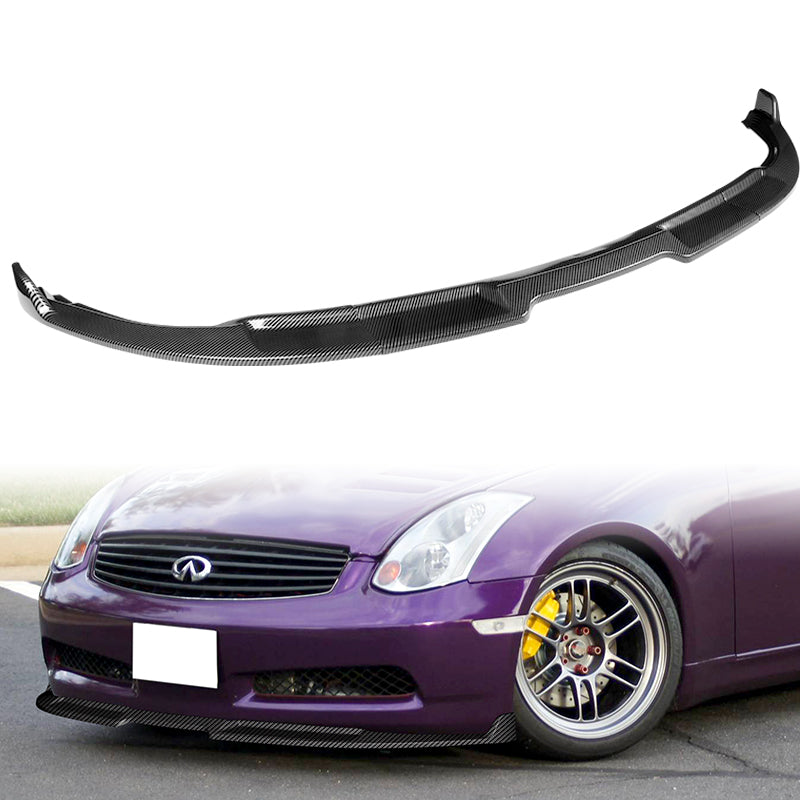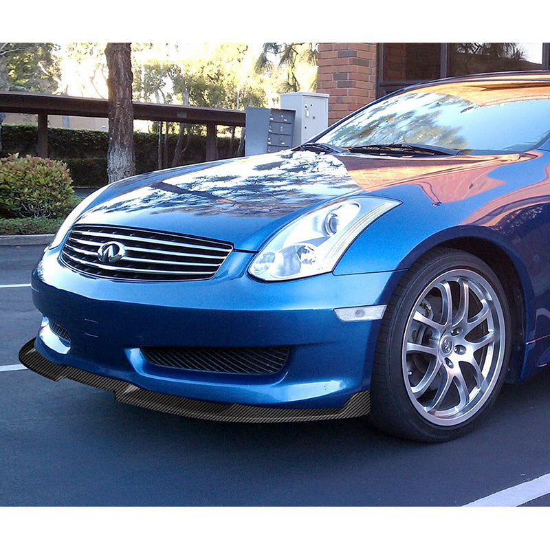 2003-2007 Infiniti G35 Coupe GT-Style Carbon Look 3-Piece Front Bumper Body Spoiler Splitter Lip Kit with Metal Badge Emblems Set