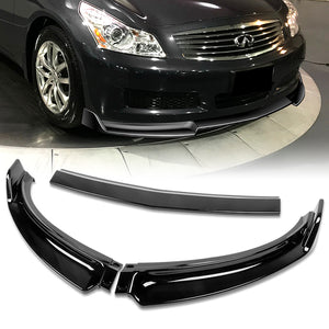 2007-2009 Infiniti G35 G37 4DR GT-Style Painted Black 3-Piece Front Bumper Body Spoiler Splitter Lip Kit with Metal Emblems Set