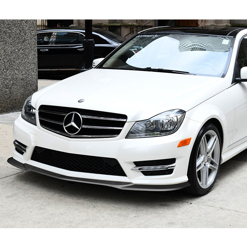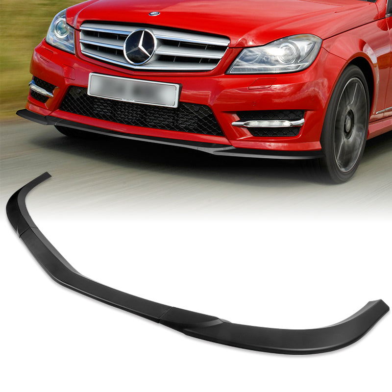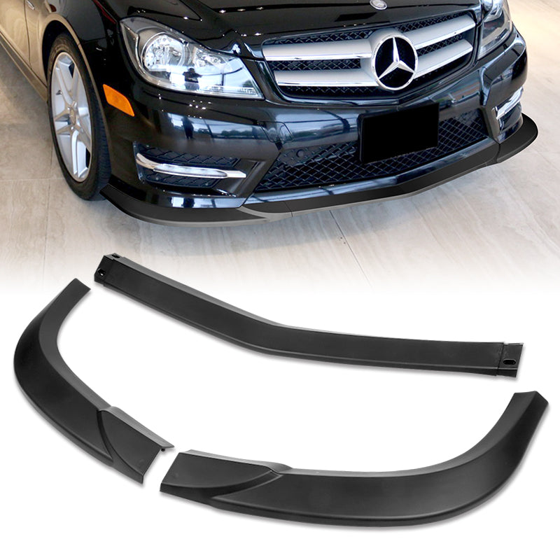 2011-2014 Mercedes C-Class W204 Sport Unpainted Black 3-Piece Front Bumper Body Spoiler Splitter Lip Kit with Leather Keychain
