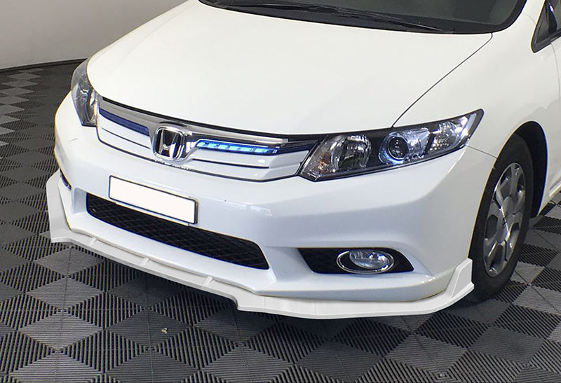 2012 Honda Civic 4DR JDM CS-Style Painted White 3-Piece Front Bumper Body Spoiler Splitter Lip Kit with Emblem