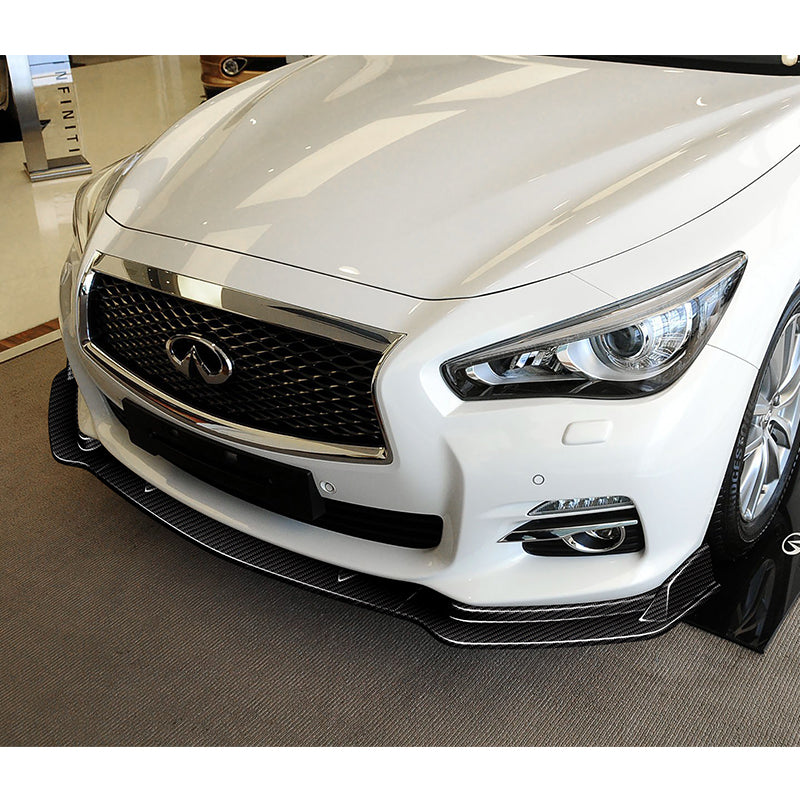 2014-2017 Infiniti Q50 Premium Real Carbon Fiber 3-Piece Front Bumper Body Spoiler Splitter Lip Kit with Screw Bolt Cap Set