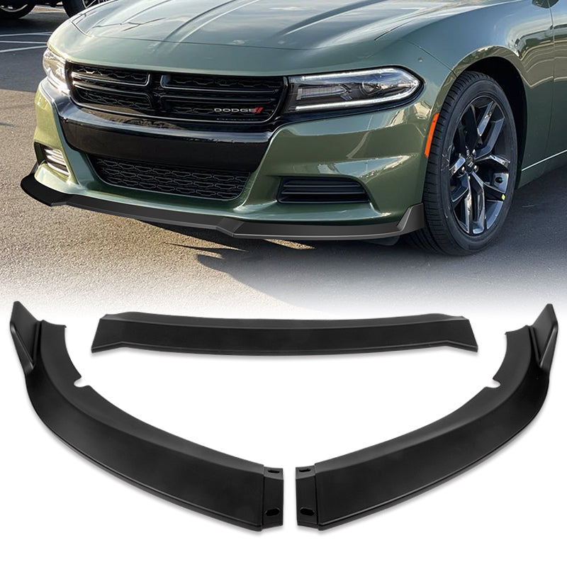 2015-2023 Dodge Charger SXT Unpainted Matte Black 3-Piece Front Bumper Body Spoiler Splitter Lip Kit