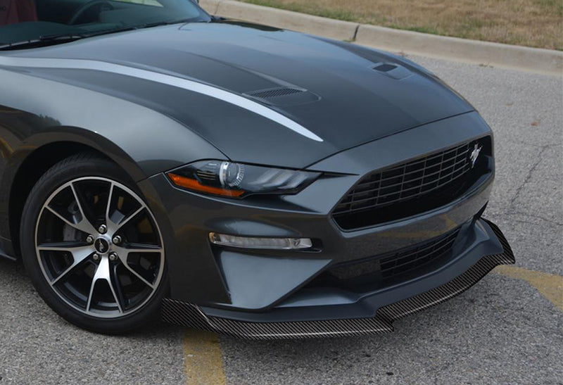 2018-2020 Ford Mustang Carbon Look GT Style 3-Piece Front Bumper Body Spoiler Splitter Lip Kit with LED Cup Holder Lights
