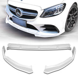 2019-2021 Mercedes W205 C-Class Painted White 3-Piece Front Bumper Body Spoiler Splitter Lip Kit