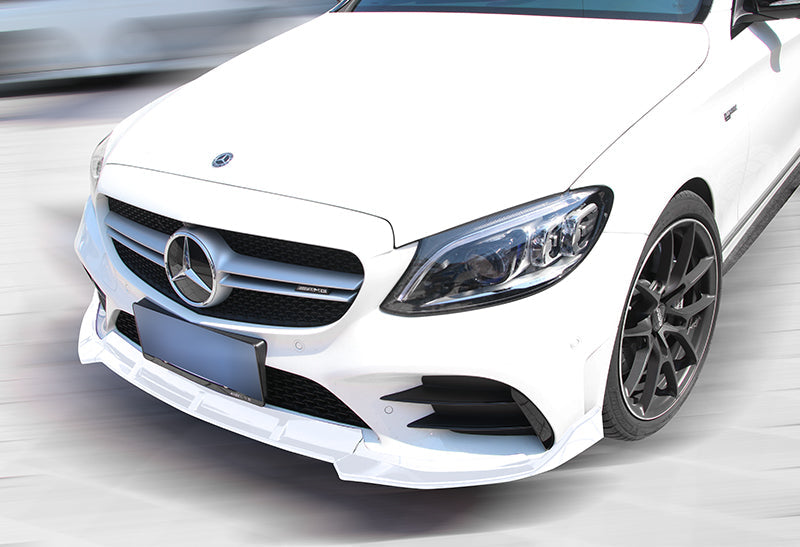 2019-2021 Mercedes W205 C-Class Painted White 3-Piece Front Bumper Body Spoiler Splitter Lip Kit with Keychain
