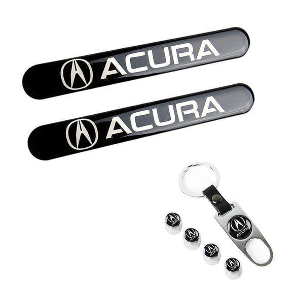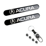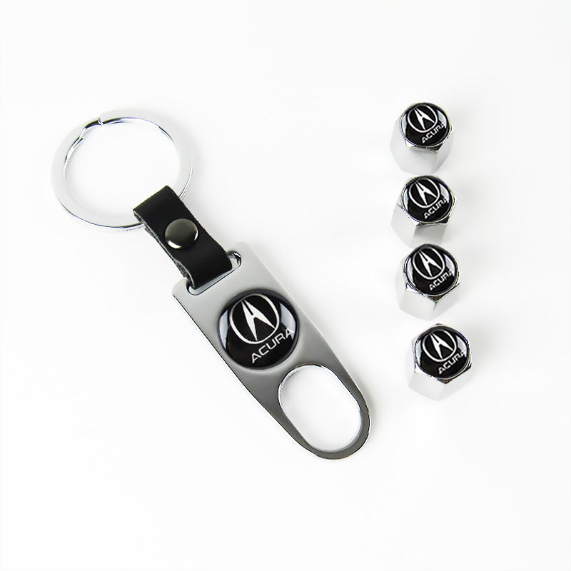 ACURA LOGO Set Black Emblems with Silver Keychain Wheel Tire Valves Air Caps - US SELLER