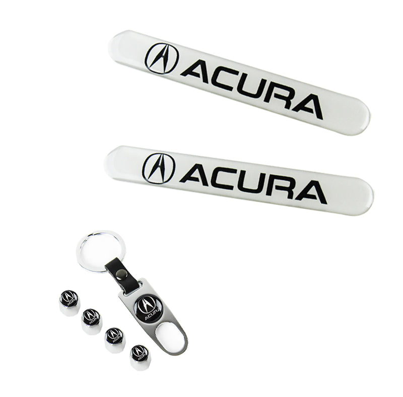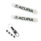 ACURA LOGO Set White Emblems with Silver Keychain Wheel Tire Valves Air Caps - US SELLER
