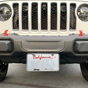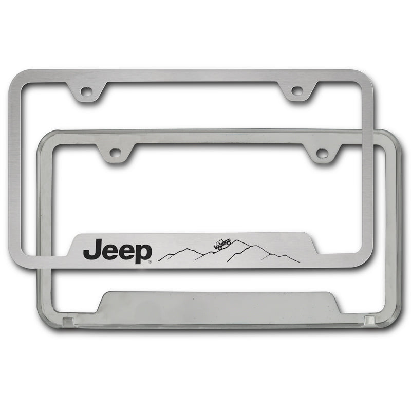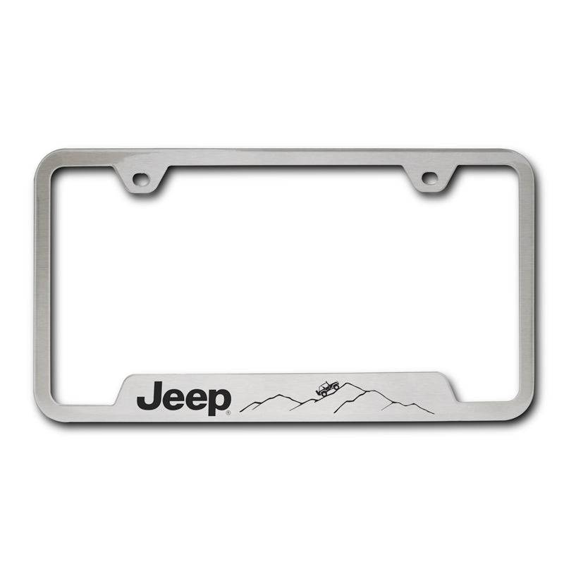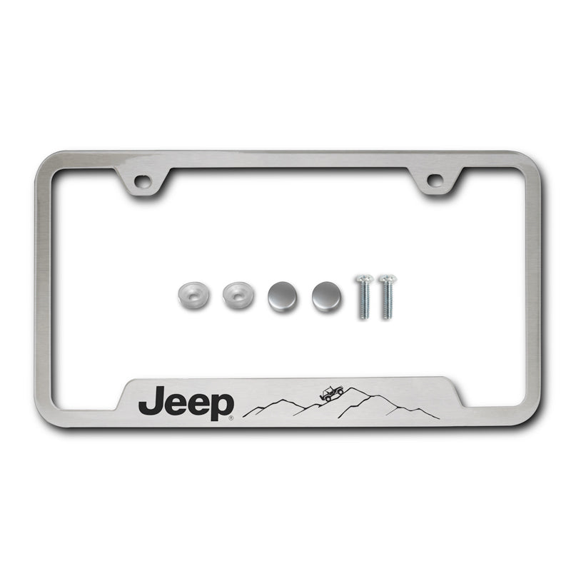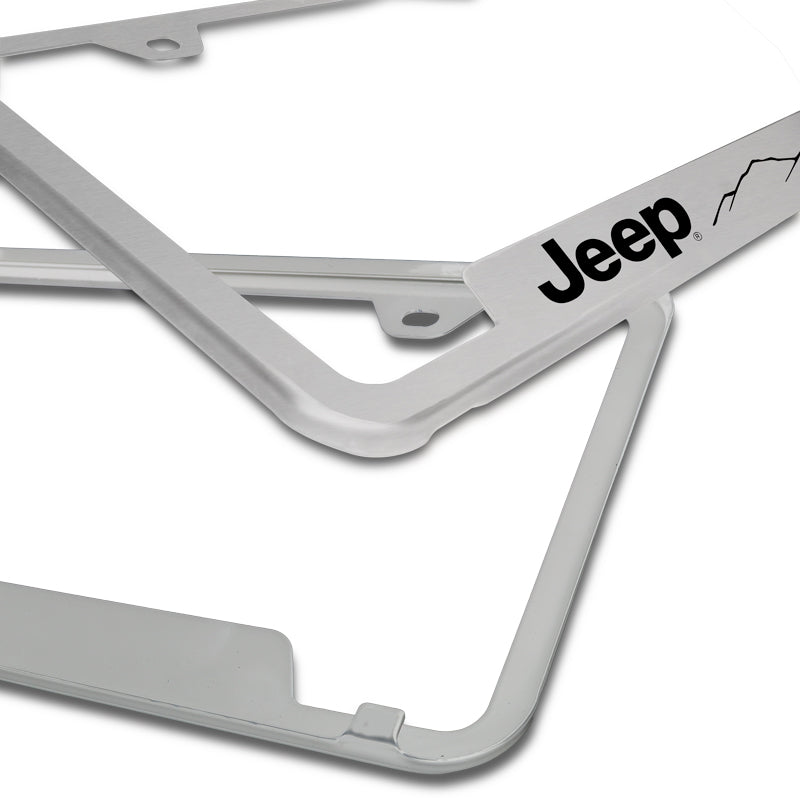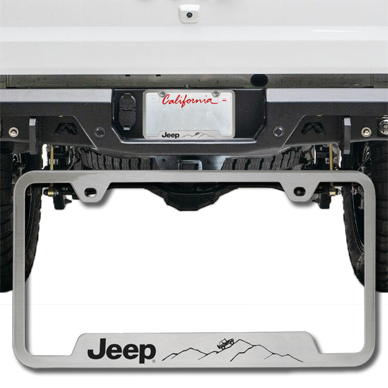Au-Tomotive Gold Genuine JEEP Laser Etched Logo Mountain Stainless Steel Cut-Out License Plate Frame GF.JEEM.ES
