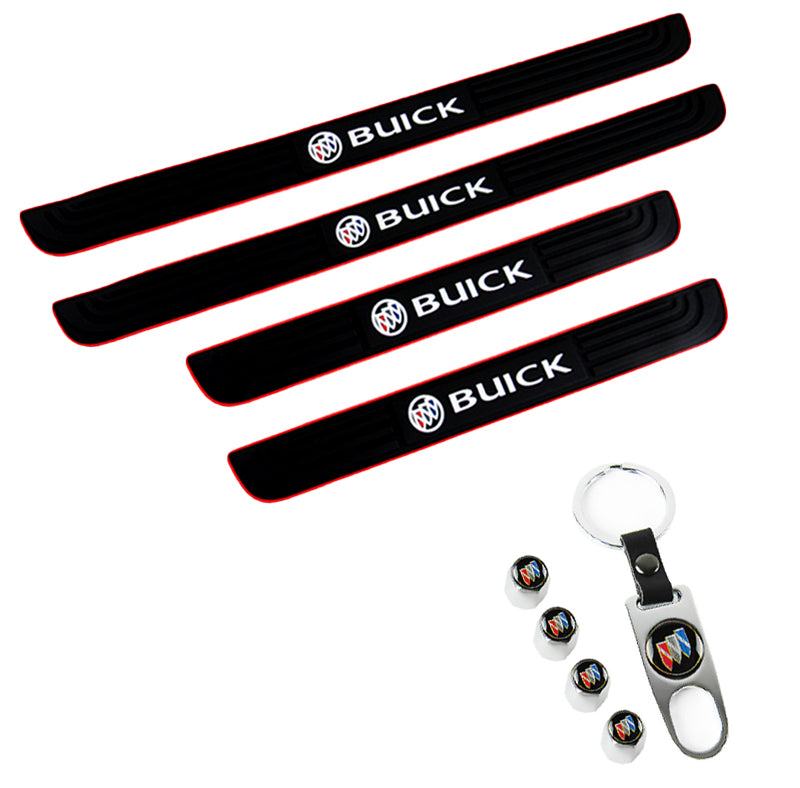 BUICK Set 4PCS Rubber Car Door Scuff Sill Panel Step Protector with Tire Wheel Valves Dust Stem Air Caps Keychain