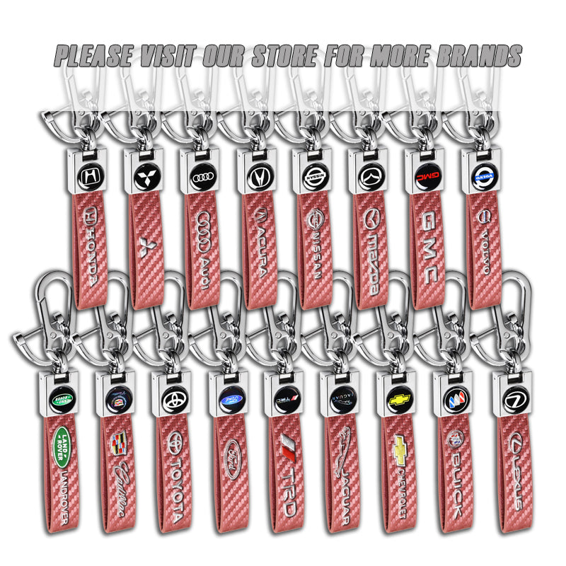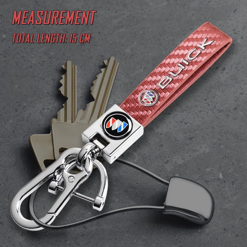 BUICK Universal Chrome 3D Logo Carbon Fiber Look Rare Pink Leather Metal Gift Decor Quick Release Lanyard Keychain