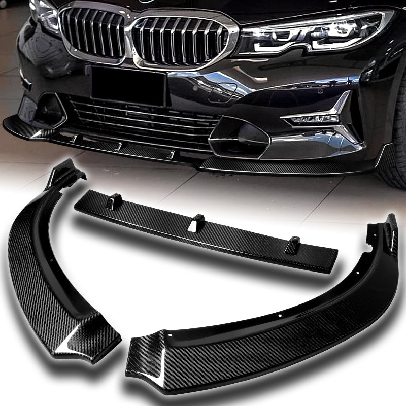 2019-2021 BMW G20 G21 3-Series Sport Real Carbon Fiber 3-Piece Front Bumper Body Spoiler Splitter Lip Kit with Fenders Bumper Badge