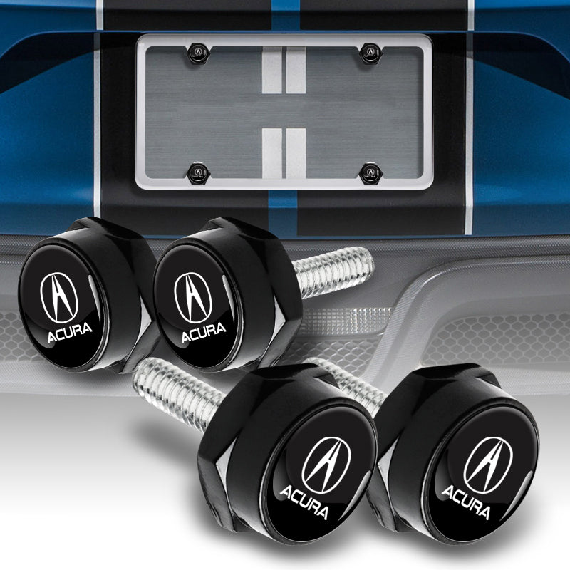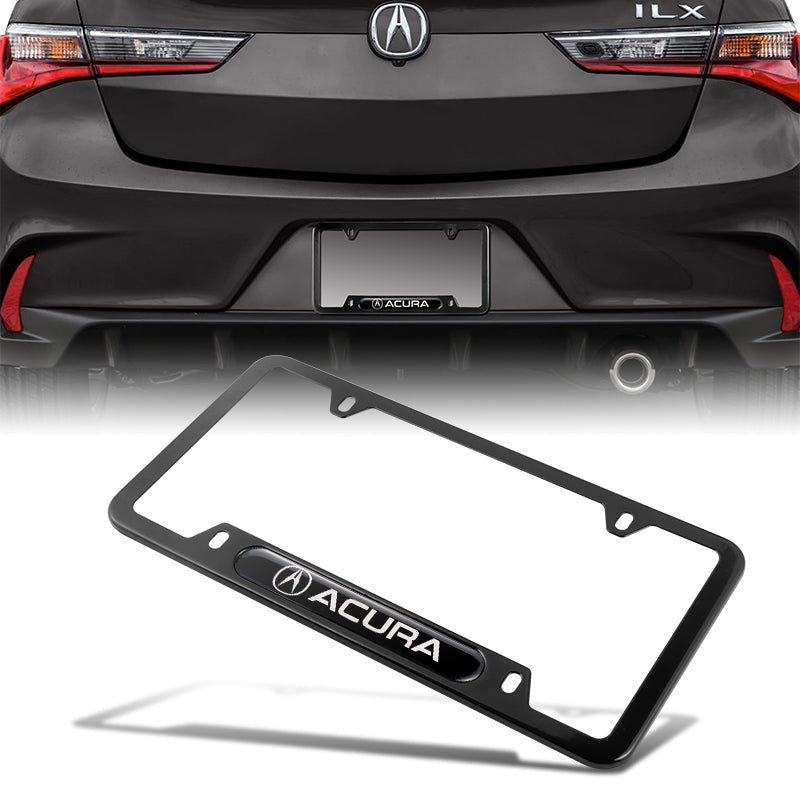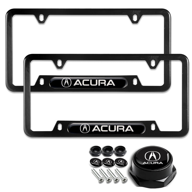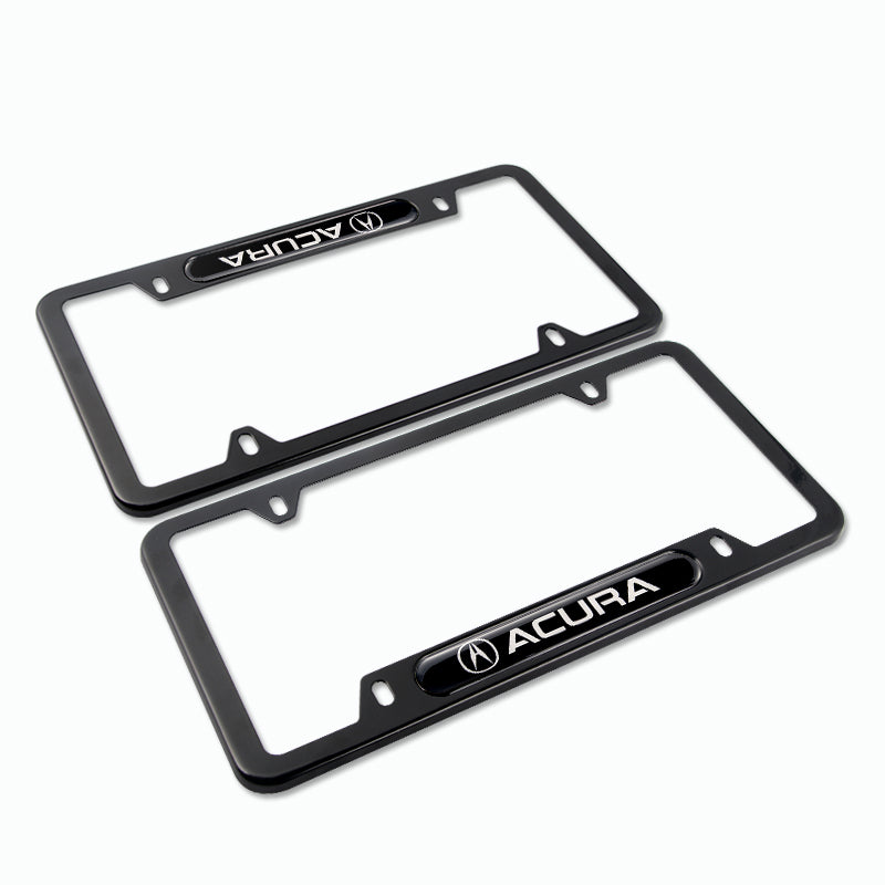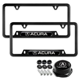 ACURA Black Stainless Steel Metal License Plate Frame 2PCS For MDX RDX TSX TL with Caps Bolt SET