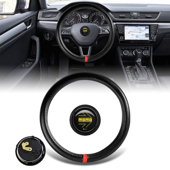 MOMO Motorsports Steering Wheel Horn Button with Carbon Fiber Look Leather 15" (38cm) Diameter Steering Wheel Cover