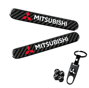 MITSUBISHI Set LOGO Emblems with Black Wheel Tire Valves Air Caps Keychain - US SELLER