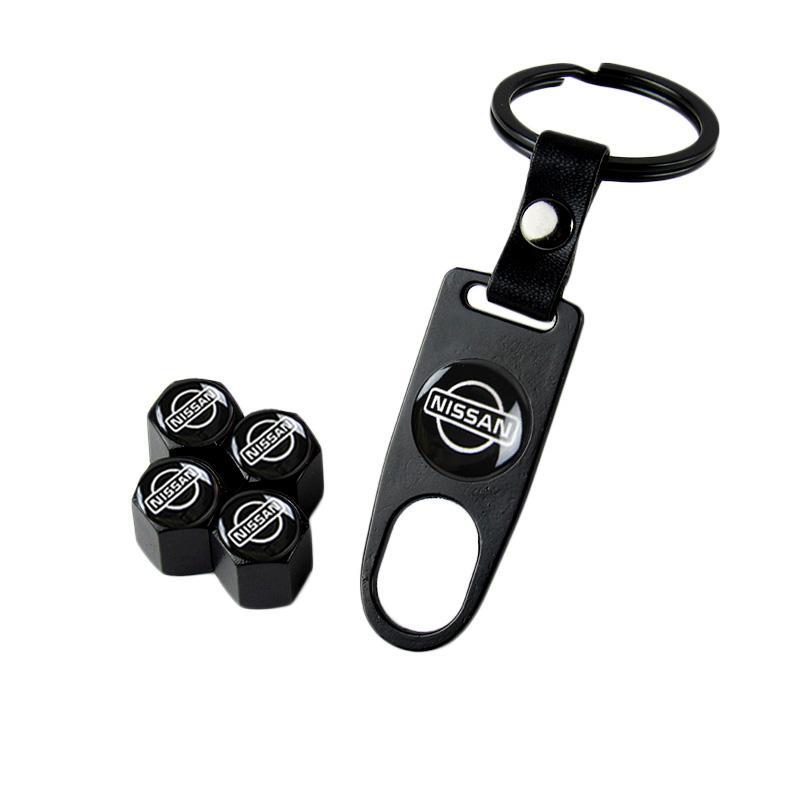 NISSAN Set LOGO Emblems with Black Wheel Tire Valves Air Caps Keychain - US SELLER