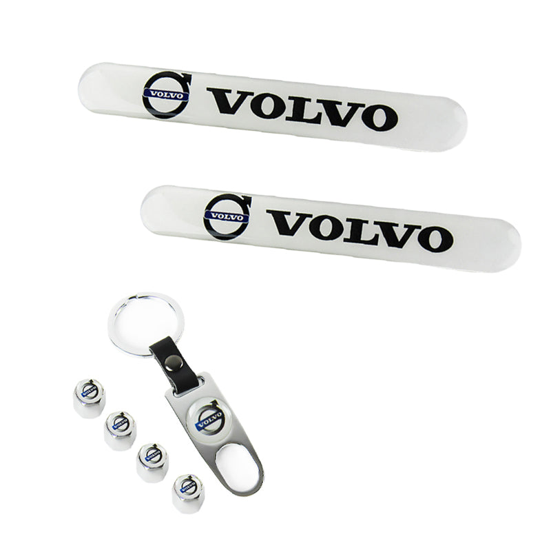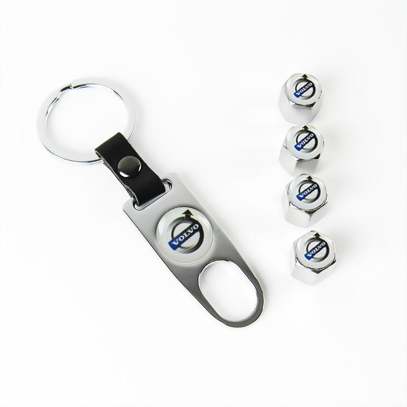 VOLVO Set LOGO Emblems with Wheel Tire Valves Air Caps Keychain - US SELLER