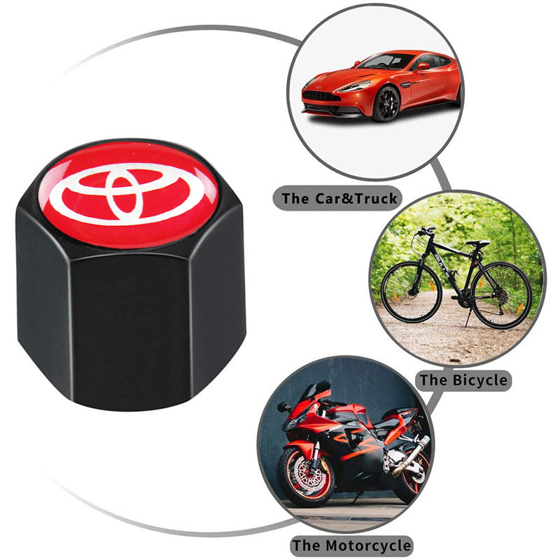 Toyota Set LOGO Emblems with Wheel Tire Valves Black Air Caps Keychain - US SELLER