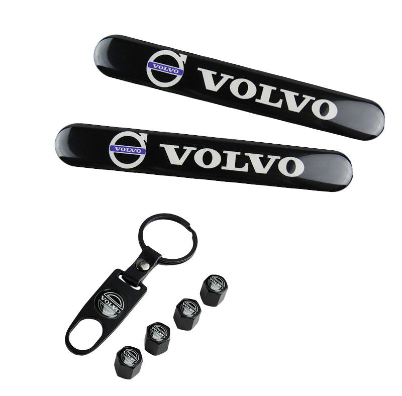 VOLVO LOGO Set Emblems with Black Tire Valves Wheel Air Caps Keychain - US SELLER