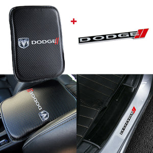 Dodge Set Carbon Fiber Look Center Console Armrest Cushion Pad Cover with Stainless Steel Emblem