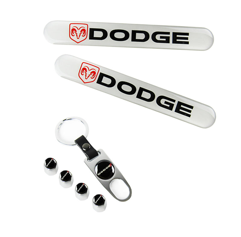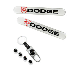 DODGE Set LOGO Emblems with Silver Wheel Tire Valves Air Caps Keychain - US SELLER
