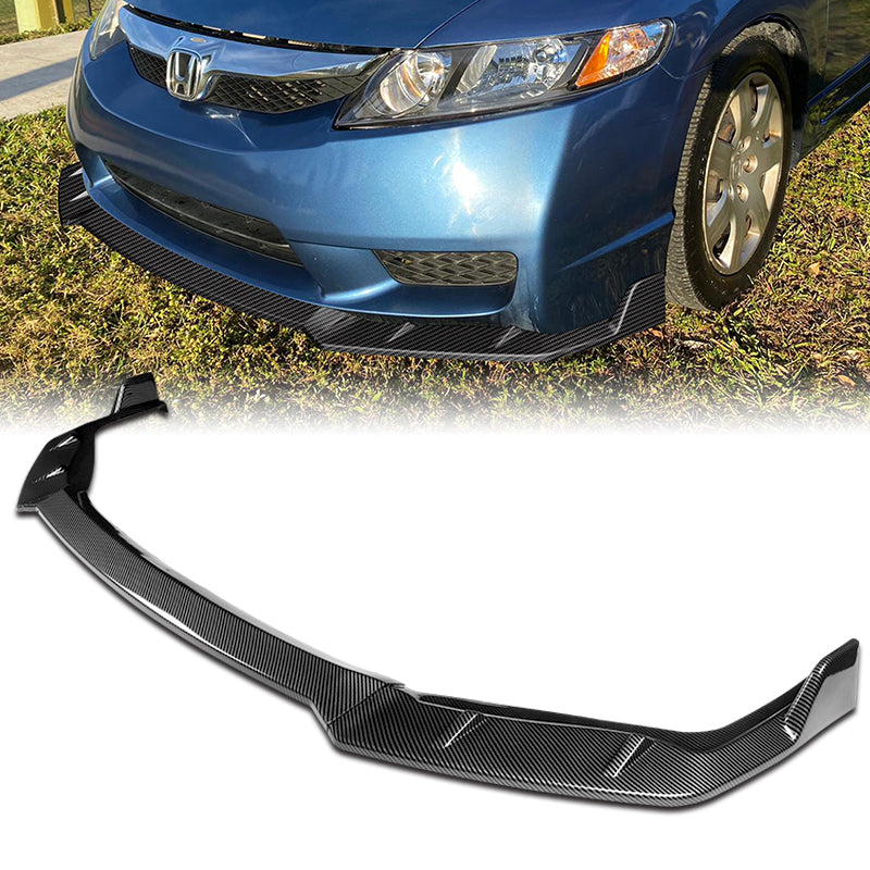 For 2009-2011 Honda Civic 4DR GT-Style Carbon Look 3-Piece Front Bumper Body Spoiler Splitter Lip Kit with Free Gift