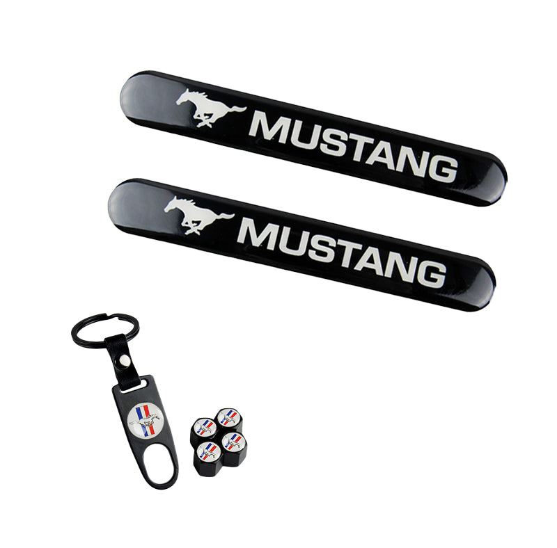 Ford Mustang Set LOGO Emblems with Black Wheel Tire Valves Air Caps Keychain - US SELLER
