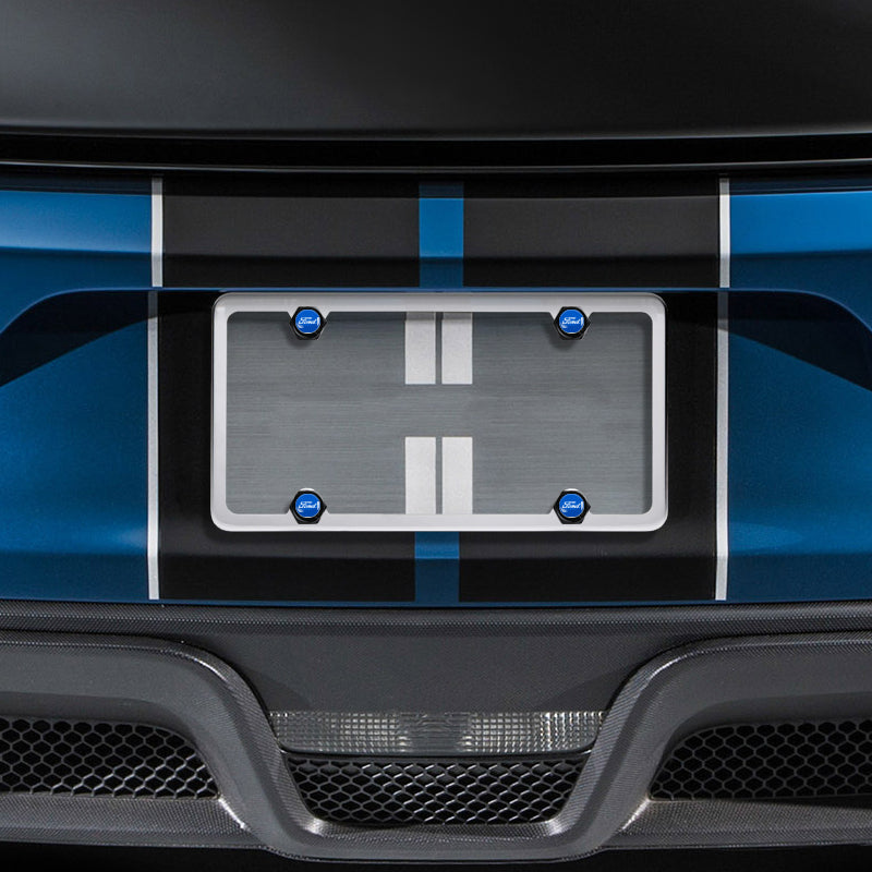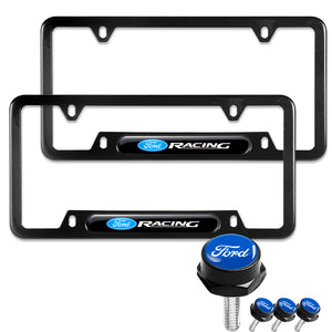FORD Racing Brand New Stainless Steel 2pcs Black License Plate Frame with Caps Bolt SET