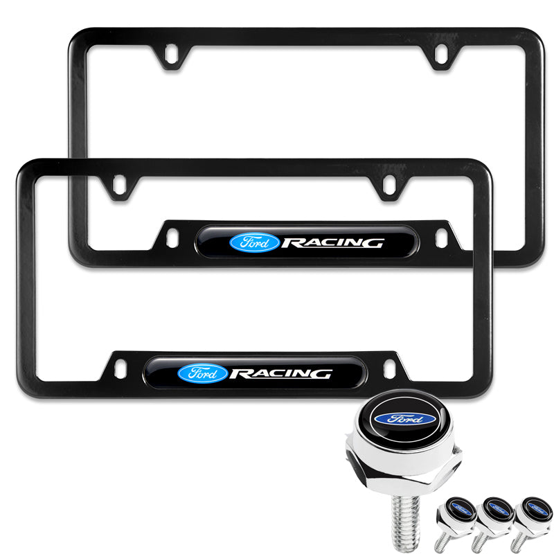 FORD Racing Brand New Stainless Steel Black SET 2pcs License Plate Frame with Caps Bolt