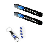 FORD Racing Set LOGO Emblems with Silver Keychain Wheel Tire Valves Air Caps - US SELLER