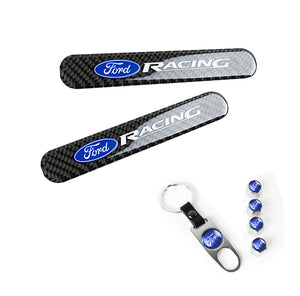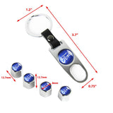 FORD Racing Set LOGO Emblems with Silver Wheel Tire Valves Air Caps Keychain - US SELLER