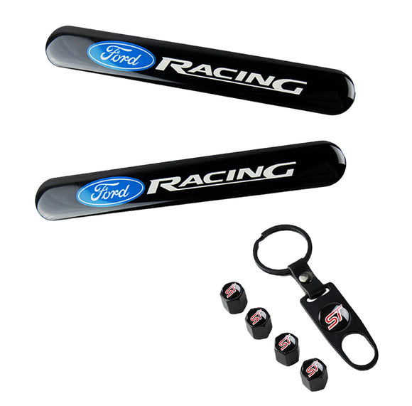 Ford Racing ST Black Set LOGO Emblems with Wheel Tire Valves Air Caps Keychain - US SELLER
