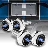 FORD Racing Stainless Steel 2pcs License Plate Frame with Caps Bolt Chrome Brand New SET