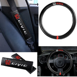 Honda CIVIC Set of Car 15" Steering Wheel Cover Carbon Fiber Style Leather with Seat Belt Covers