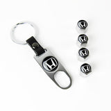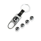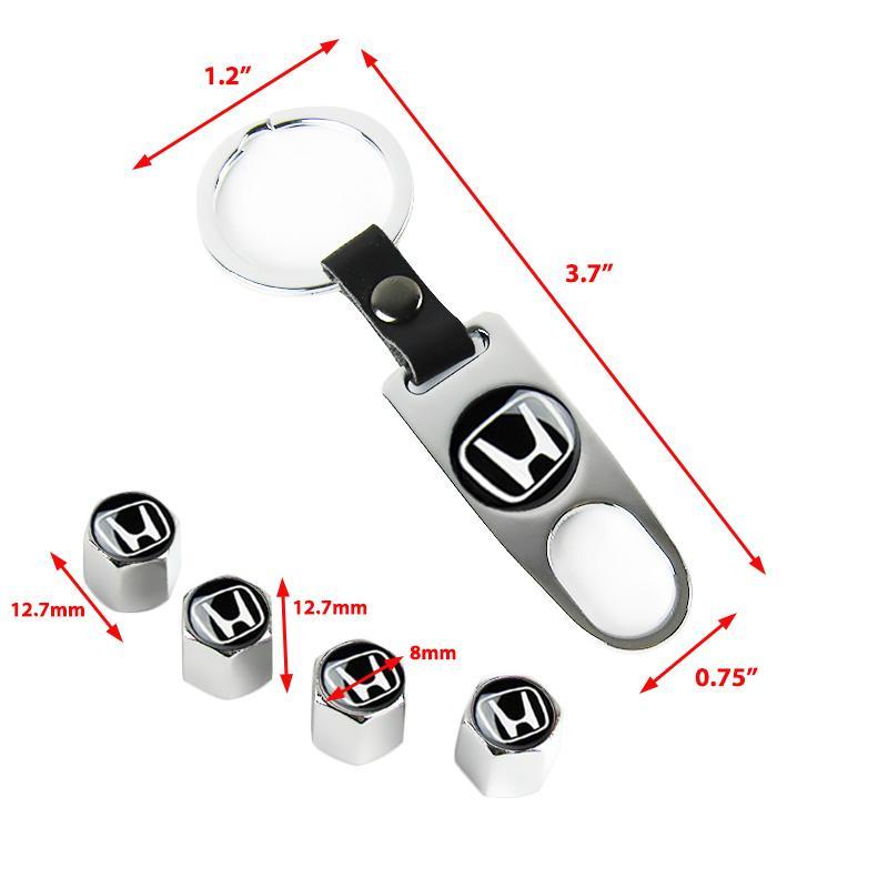 HONDA LOGO Set Emblems with Silver Keychain Wheel Tire Valves Air Caps - US SELLER