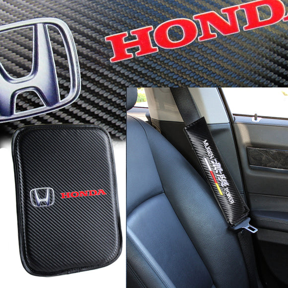 Honda Mugen Set Car Center Console Armrest Cushion Mat Pad Cover with Seat Belt Cover Set