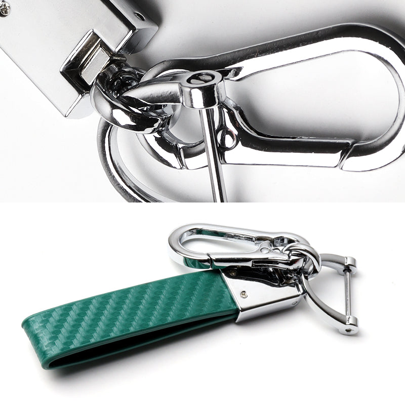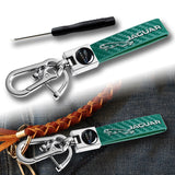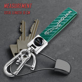 JAGUAR Universal Chrome 3D Logo Carbon Fiber Look Green Leather Metal Gift Decor Quick Release Lanyard Keychain
