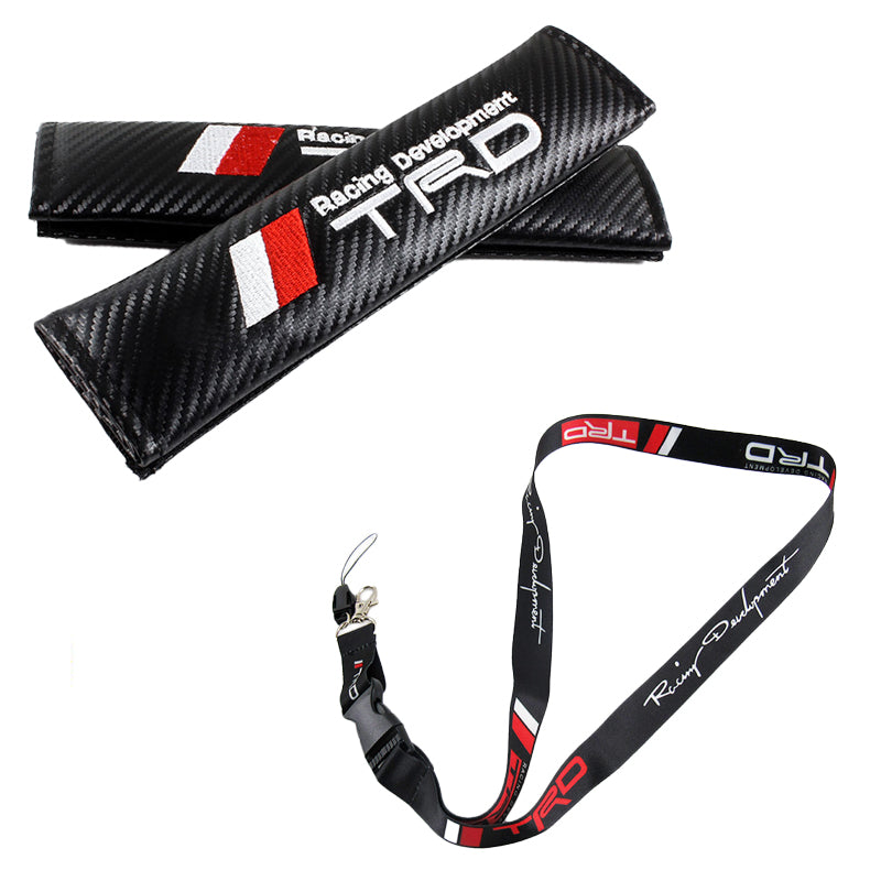 JDM TRD Racing Carbon Fiber Look Embroidery Seat Belt Cover Shoulder Pads 2pcs with TRD Keychain