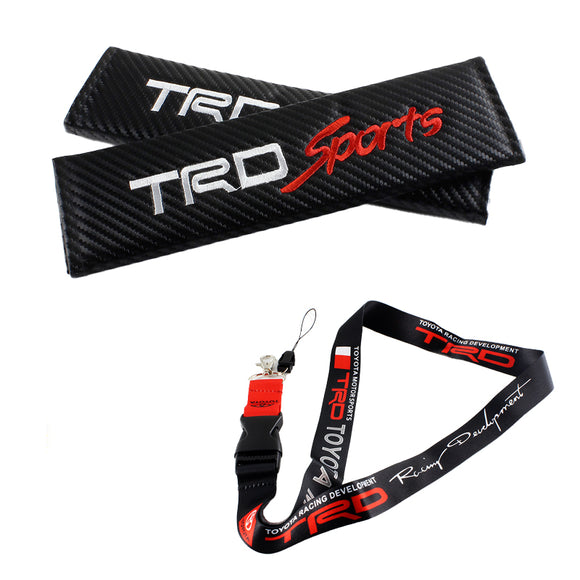JDM TRD Sports Racing Set Carbon Fiber Look Embroidery Seat Belt Cover Shoulder Pads 2pcs with TRD Keychain