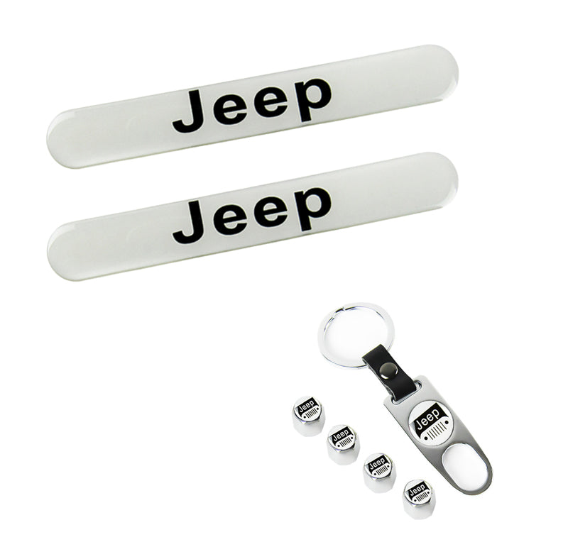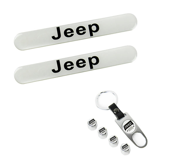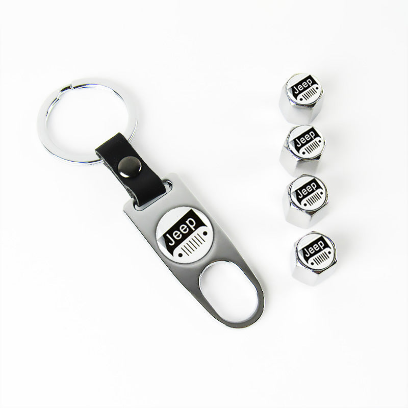 JEEP LOGO Set Emblems with Silver Keychain Tire Wheel Valves Air Caps - US SELLER