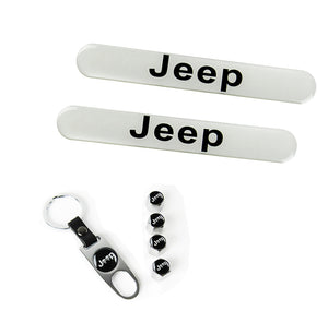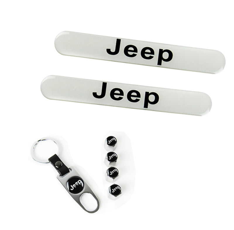 JEEP Set Emblems with Punisher Logo Wheel Tire Valves Silver Air Caps Keychain - US SELLER