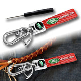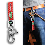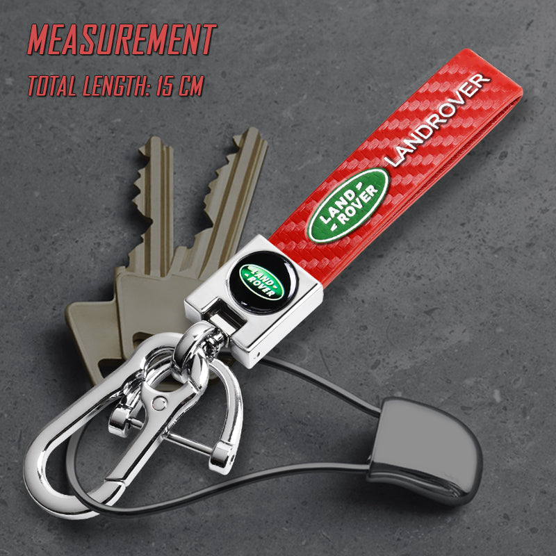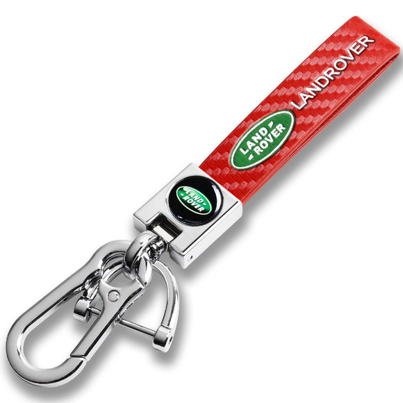 LANDROVER Universal Chrome 3D Logo Carbon Fiber Look Red Leather Metal Gift Decor Quick Release Lanyard Keychain