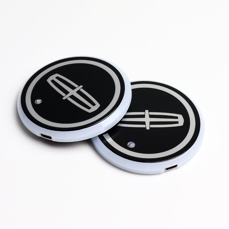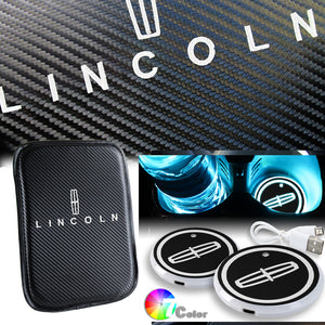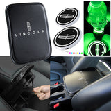 Lincoln Car Center Console Armrest Cushion Mat Pad Cover Stitched Embroidery Logo with LED Cup Coaster Set
