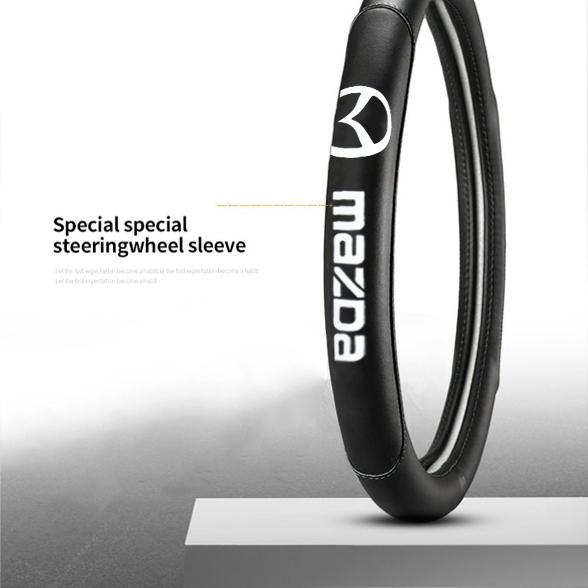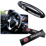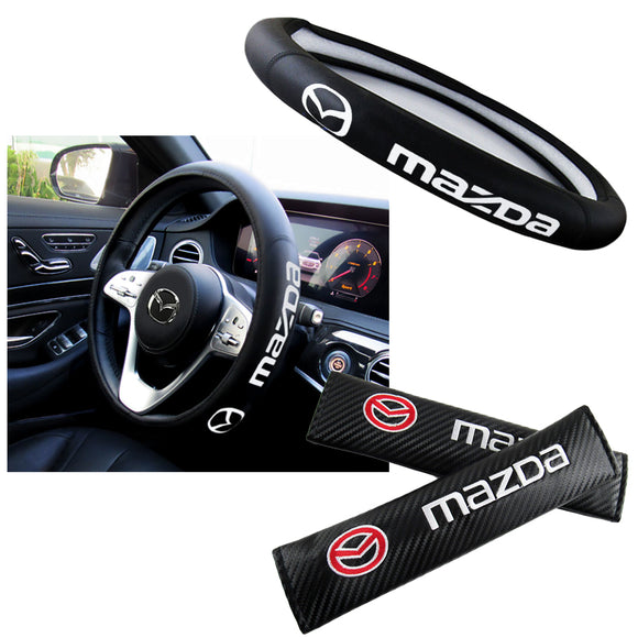 Mazda MazdaSpeed Set of Car 15" Steering Wheel Cover Quality Leather with Seat Belt Covers