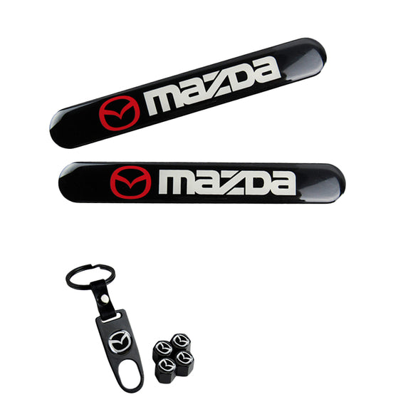 Mazda Set LOGO Emblems with Wheel Tire Valves Black Air Caps Keychain - US SELLER