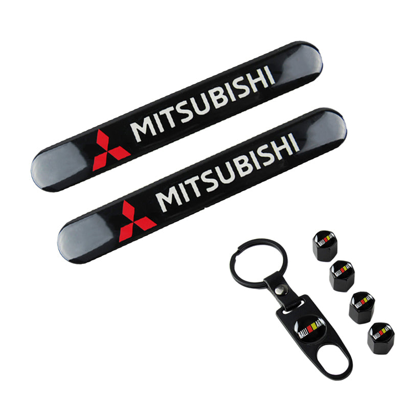 MITSUBISHI Black Set LOGO Emblems with Ralliart Tire Wheel Valves Air Caps Keychain - US SELLER