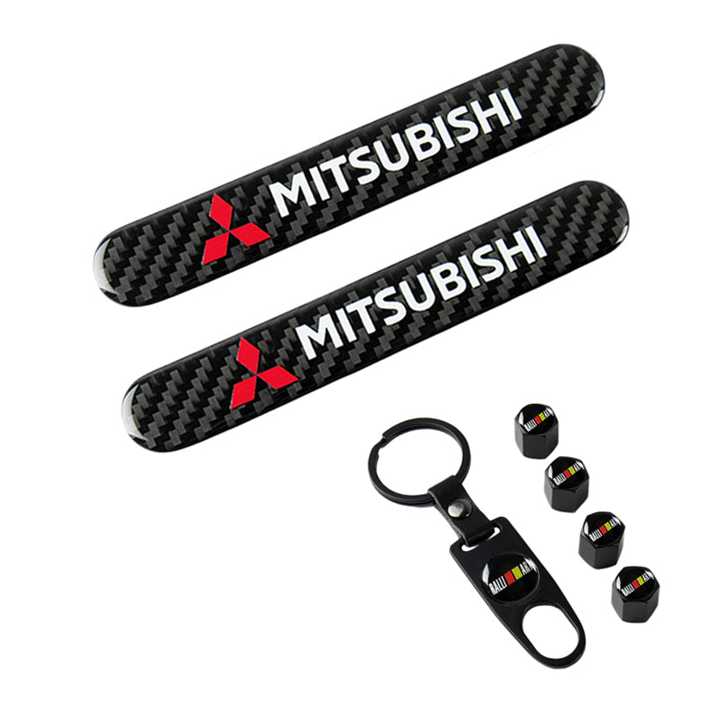 MITSUBISHI Set LOGO Emblems with Black Ralliart Tire Wheel Valves Air Caps Keychain - US SELLER
