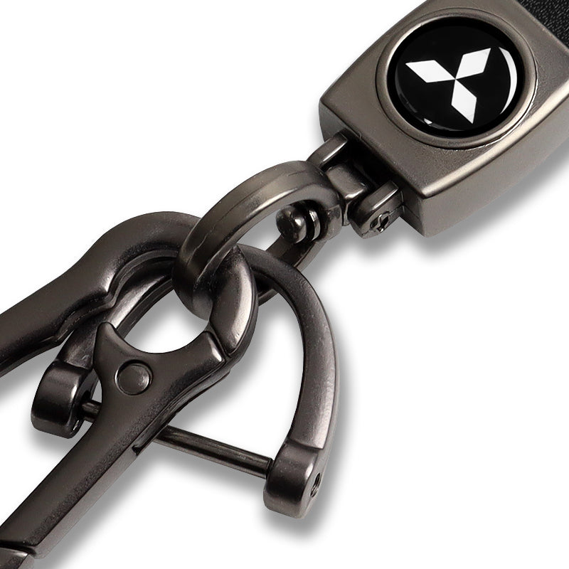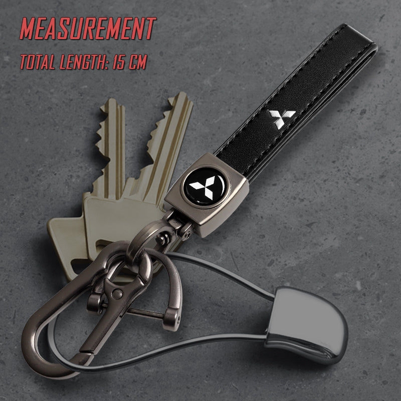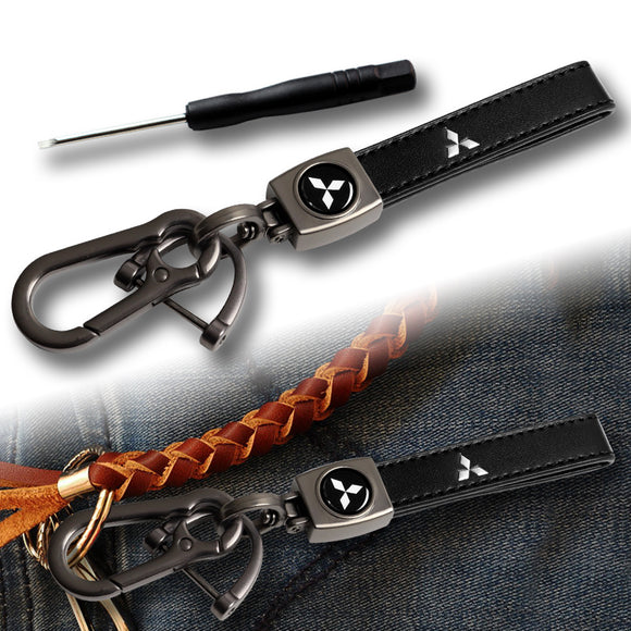 Mitsubishi Universal Black 3D Logo Leather Metal Gift Decor Quick Release Lanyard Keychain
