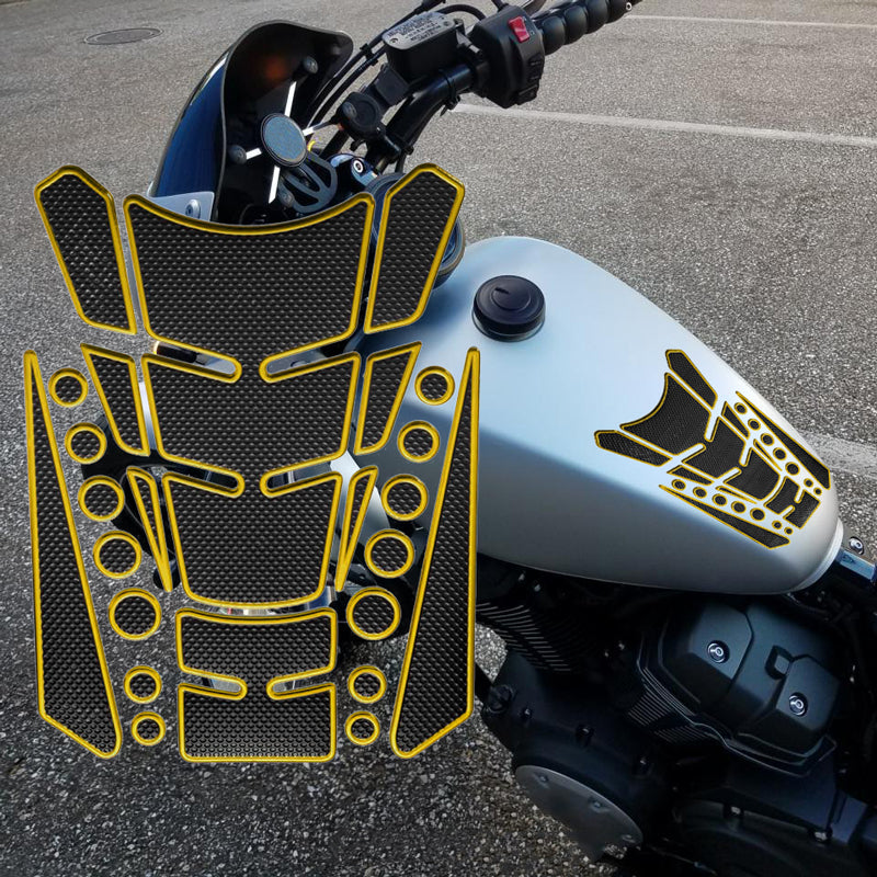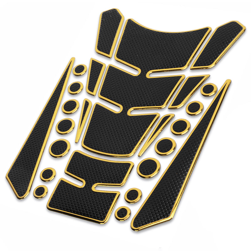 Motorcycle Fuel Tank 3D Gel Pad Protector Carbon Fiber Look Yellow Decal Sticker Universal