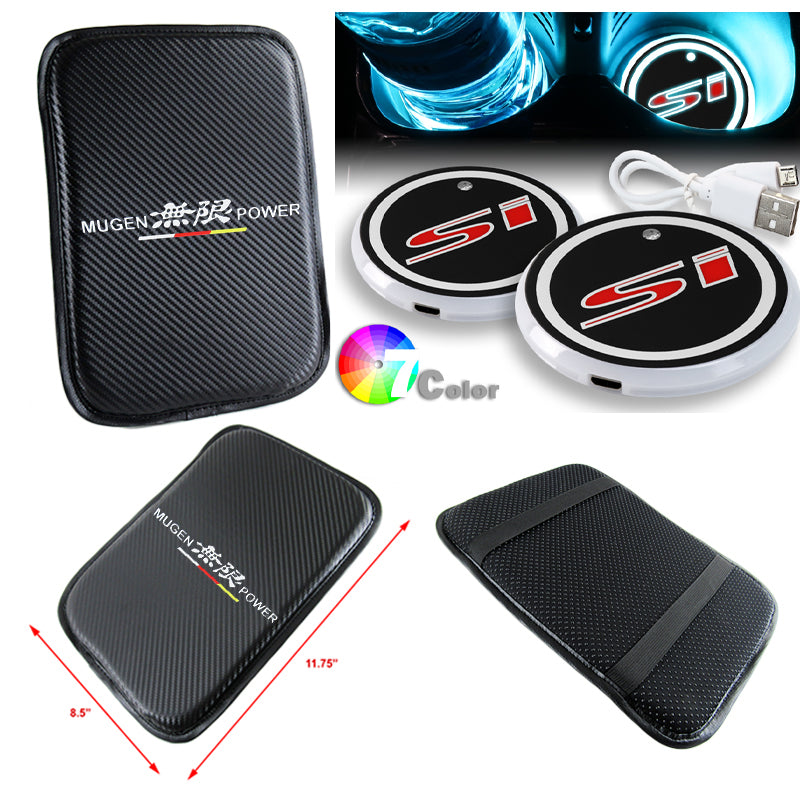 Mugen Si CIVIC Set Car Center Console Armrest Cushion Mat Pad Cover with LED Cup Coaster Set
