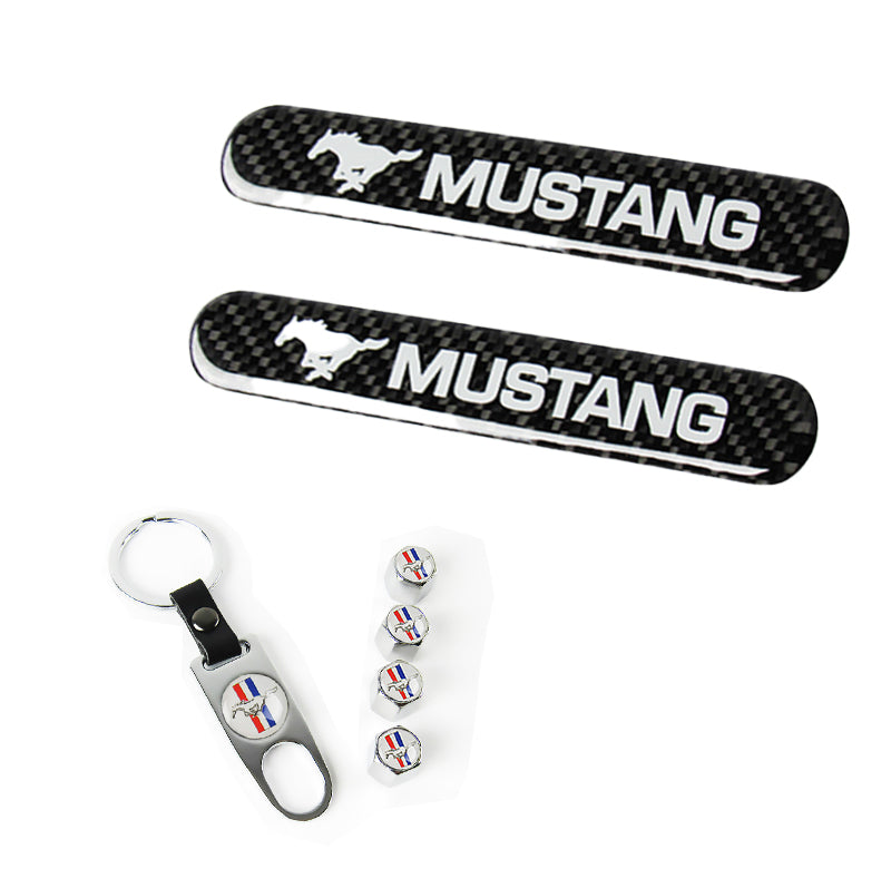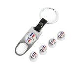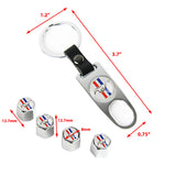Ford Mustang Set LOGO Emblems with Silver Tire Valves Wheel Air Caps Keychain - US SELLER